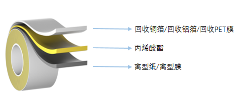 产品特性:采用回收金属、或者回收PC、PET、PBT等塑料薄膜作为基材制成的胶带,减少了碳排放,保持材料原有性能。